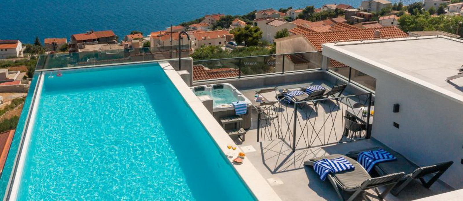 Novoizgrađena vila s pogledom na Jadransko more sa svoje jedinstvene krovne terase s velikim *grijanim* bazenom i jacuzzijem! Vila je zamišljena tako da nudi mogućnost opuštanja i uživanja u prekrasnom pogledu dok se osjećate sjedinjeni s morem.